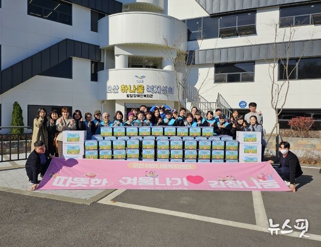 (뉴스핏 = 민선기 기자) 오산시하나울복지센터는 지난 21일 오산시 발달장애인 단체 및 사회복지기관 그리고 복지관을 이용하는 지역사회 장애인들을 위한 ‘따뜻한 겨울나기 김장 나눔’행사를 열었다고 알렸다.