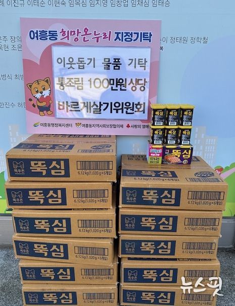(뉴스핏 = 김호 기자) 지난 26일 바르게살기운동 여흥동위원회는 여흥동(동장 박창주)에 100만원 상당의 통조림을 기탁했다.