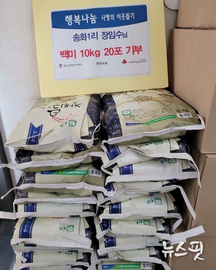 (뉴스핏 = 김수진 기자) 평택시 팽성읍 송화1리 주민 장임수 님이 설 명절을 앞두고 어려움을 겪고 있는 관내 이웃에게 나누어 달라며 지난 7일 팽성읍 행정복지센터(읍장 최원관)를 방문해 백미 10㎏ 20포를 기부했다.