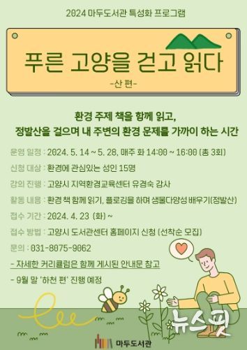 (뉴스핏 = 김수진 기자) 고양특례시 마두도서관은 오는 5월 14일부터 5월 28일까지 특성화 프로그램 「푸른 고양을 걷고 읽다 – 산 편 -」을 운영한다.