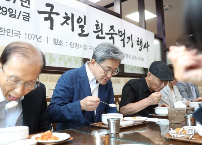 (뉴스핏 = 김호 기자) 광명시와 광복회 광명시지회는 29일 경술국치일을 맞아 나라와 주권의 소중함을 되새기고 선열들의 희생을 기리기 위한 ‘찬 흰죽 먹기 행사’를 진행했다.