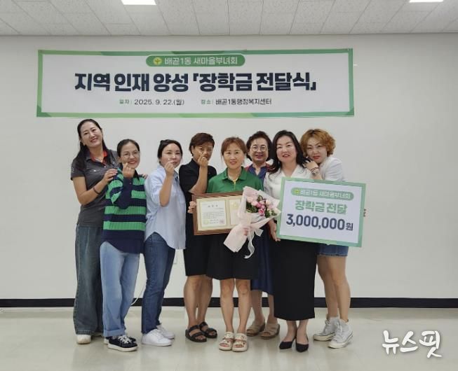 (뉴스핏 = 김수진 기자) 시흥시 배곧1동 새마을부녀회는 지난 22일 배곧1동 행정복지센터에서 지역 인재 양성을 위한 장학금 전달식을 하고, 관내 거주 중고등학생 3명에게 각각 100만 원씩, 총 300만 원의 장학금을 전달했다.
