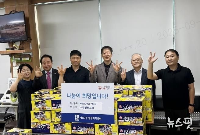 (뉴스핏 = 김호 기자) 수원영원교회는 지난 22일, 추석 명절을 맞이하여 관내 취약계층을 위해 세류3동 행정복지센터에 라면(20개입) 70박스를 후원하며 이웃사랑 나눔을 실천했다.