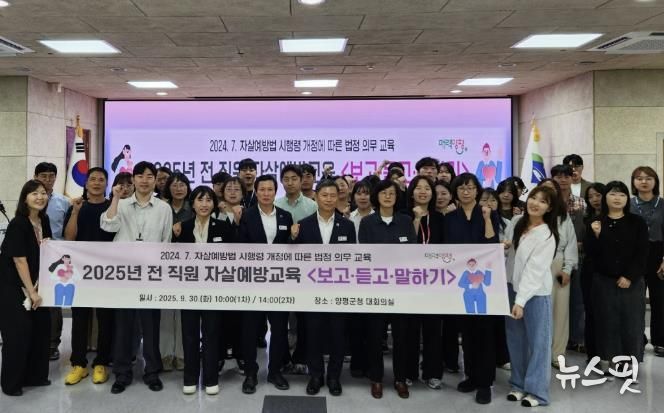 (뉴스핏 = 김호 기자) 양평군은 지난 9월 30일 양평군청 대회의실에서 공공기관 종사자 약 100명을 대상으로 ‘자살 예방 생명지킴이 교육’을 실시했다.