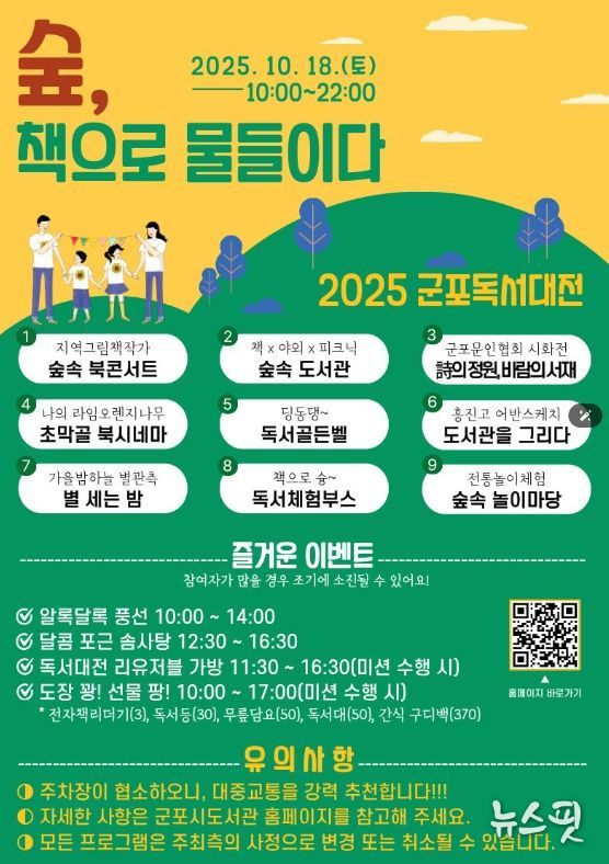 하은호 군포시장은 “올해 독서의 달 행사는 책 읽는 즐거움을 넘어 예술과 체험이 어우러진 복합 문화축제로 시민들과 함께 했다”며 “오는 10월 17~18일 군포올래 행복축제 기간에 초막골 생태공원에서 열리는 군포독서대전에서도 시민들이 책과 가까워지고 다양한 독서문화 프로그램을 즐길 수 있도록 풍성한 행사를 준비하고 있다”며 많은 관심과 참여를 당부했다.