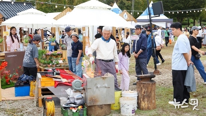 축제장 메인무대 앞에 조성된 문화장 페스타 공간은 19명의 문화 장인이 참여해 전시, 시연, 판매 등을 겸한 △안성문화장인전, 다양한 테마 체험을 즐길 수 있는 △안성문화상단전, 청년 공예가들과 함께하는 △공예체험 하우스, 이색 공예품을 만날 수 있는 △힙크래프트 편집숍 등이 마련됐다.