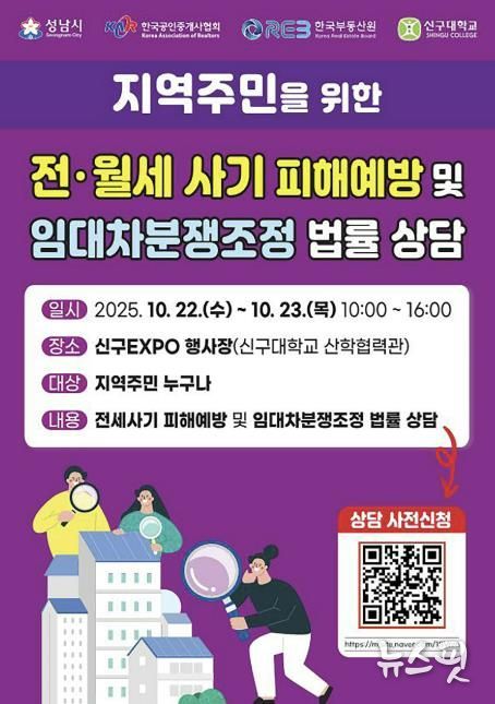 (뉴스핏 = 김호 기자) 성남시는 오는 22일부터 23일까지 양일간 오전 10시부터 오후 4시까지 신구대학교 신구EXPO 행사장에서 ‘전세사기 피해예방 상담 부스’를 운영한다.