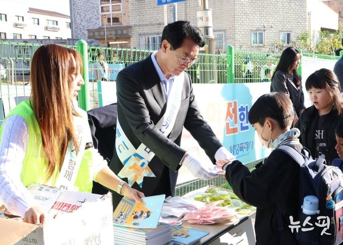 (뉴스핏 = 김수진 기자) 화성특례시가 22일 장안초등학교에서 등교 시간에 맞춰 민관 합동 교통안전 캠페인을 진행했다.