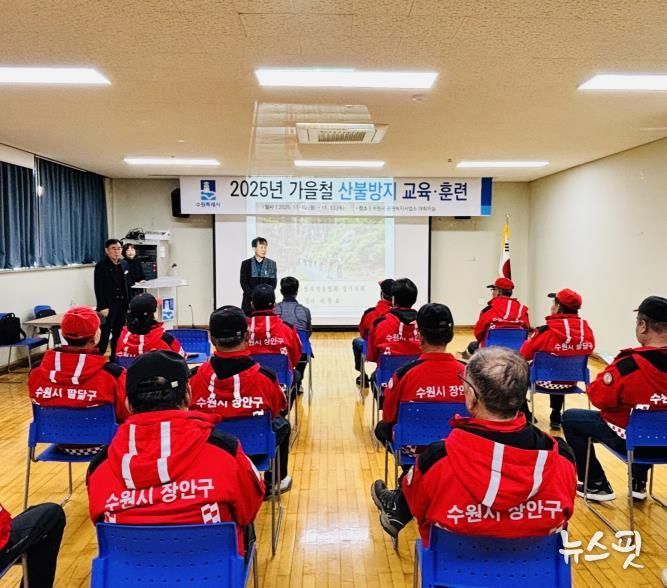 (뉴스핏 = 김호 기자) 수원특례시가 10일 공원녹지사업소 대회의실에서 가을철 산불방지 교육·훈련을 했다.