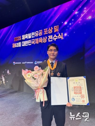 (뉴스핏 = 김수진 기자) 고양특례시 소속 직장운동경기부 세팍타크로팀의 임안수 선수가 지난 21일 서울 웨스틴조선호텔 그랜드볼룸에서 열린 ‘2025 체육발전유공 포상 및 제63회 대한민국체육상 전수식’에서 체육훈장‘맹호장’을 수훈했다.