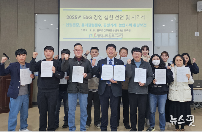 (뉴스핏 = 김수진 기자) 평택시로컬푸드재단은 지난 24일 평택로컬푸드종합센터 2층 교육장에서 ESG 윤리·인권경영 선언 및 실천 서약식을 진행했다.