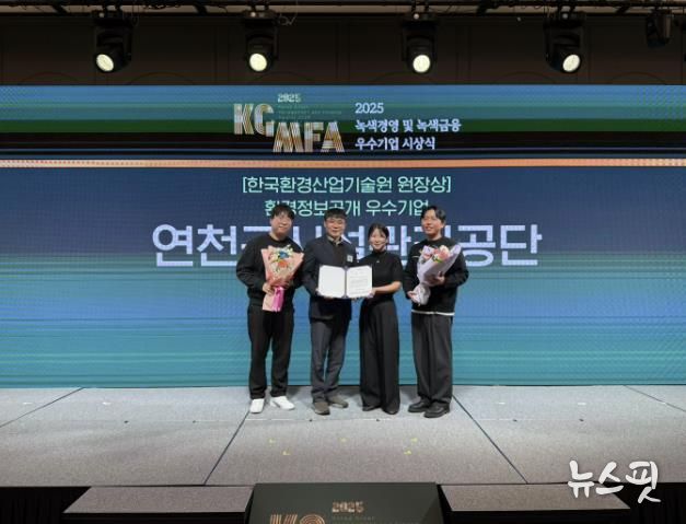 (뉴스핏 = 김호 기자) 연천군시설관리공단은 지난 27일, ‘2025년 녹색경영 및 녹색금융 우수기업 시상식’에서 환경정보공개 부문 전국 공사·공단 중 유일하게 우수기관으로 선정되어 기술원장상을 수상했다고 밝혔다.