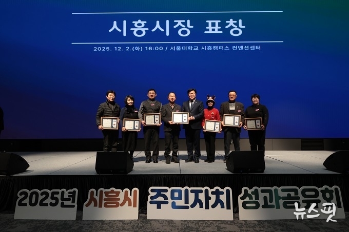 (뉴스핏 = 김수진 기자) 2일 서울대학교 시흥캠퍼스 컨벤션센터에서 열린 ‘2025년 시흥시 주민자치 성과공유회’에서 임병택 시흥시장이 각 동 주민자치회 관계자를 격려하고, 주민자치 활성화를 위해 노력한 유공자들에게 표창을 수여했다.
