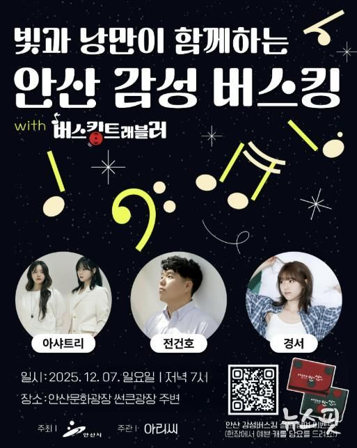 특히 버스킹 공연은 ‘안산 겨울 빛의 나라’ 축제를 배경으로 진행돼 감미로운 공연과 함께 화려한 조명으로 가득찬 문화광장의 아름다운 풍경을 즐길 수 있다.