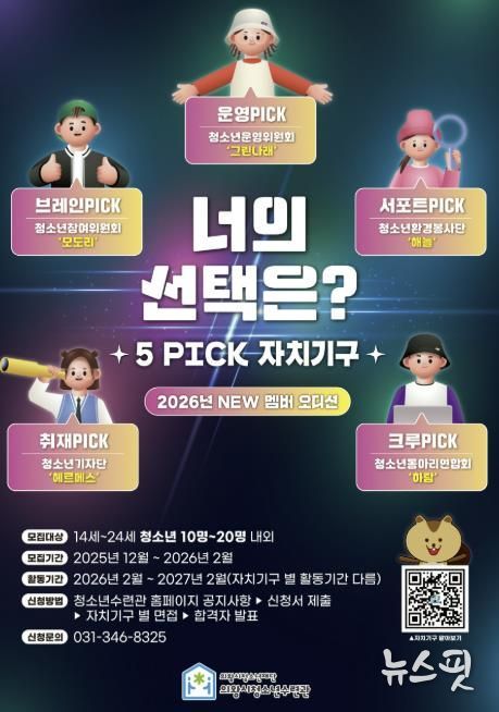 (뉴스핏 = 김수진 기자) 의왕시청소년재단 내 의왕시청소년수련관에서 2026년도 청소년 자치기구에 참여할 청소년을 모집한다. 이번 모집은 의왕시에 거주하거나 재학 중인 14세~24세 청소년을 대상으로 하며, 2025년 12월부터 2026년 2월까지 신청할 수 있다.