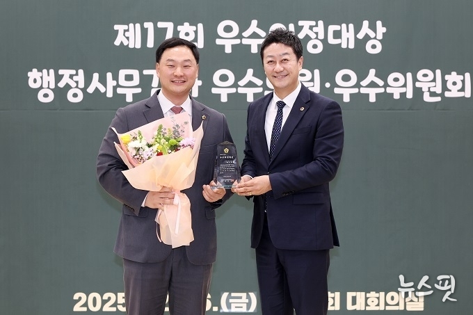 대한민국시도의회의장협의회 우수의정대상은 지역사회 발전과 주민 복지 증진에 기여한 의정활동의 모범 사례를 발굴·격려하기 위해 제정된 상으로, 형식적인 활동이 아닌 정책 실효성, 주민 체감도, 현장 중심 의정활동을 중점적으로 평가해 수상자를 선정하는 권위 있는 상이다.