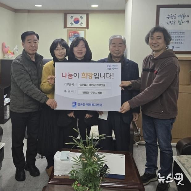 (뉴스핏 = 김호 기자) 수원시 팔달구 행궁동 주민자치회는 지난 4일 지역 내 취약계층을 돕기 위해 후원금 200만원을 행궁동 행정복지센터에 기부했다.
