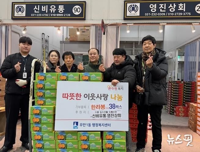 (뉴스핏 = 김호 기자) 수원 농수산물도매시장 내 신비유통‧영진상회에서 설 명절을 앞두고 우만동 이웃들에게 따뜻한 정을 전했다고 밝혔다.