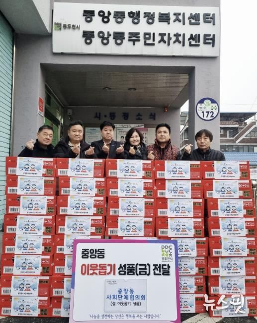 이번 설맞이 이웃돕기는 중앙동 사회단체의 후원금과 사회복지공동모금회 예치금을 활용해 마련됐다.