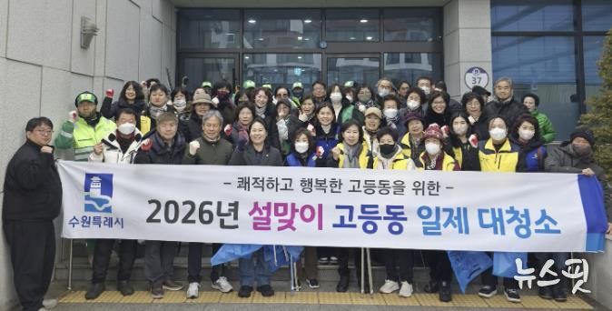 (뉴스핏 = 김호 기자) 수원시 팔달구 고등동은 지난 6일 설 명절을 맞아 고등동 관내에서 주민과 직원이 함께하는 ‘설맞이 대청소’를 실시했다.