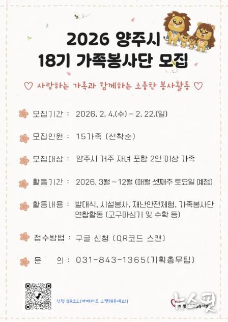 양주시자원봉사센터 이정주 센터장은 “가족이 함께 봉사활동에 참여하는 경험은 자녀에게 나눔의 가치를 자연스럽게 전달하고, 가족 간 유대감을 강화하는 계기가 된다.”며 “지역사회에 따뜻한 변화를 만들어갈 가족들의 많은 관심과 참여를 바란다.”고 전했다.