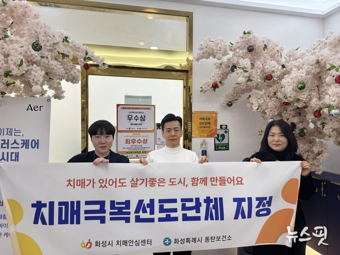 (뉴스핏 = 김수진 기자) 화성특례시 동탄구보건소는 19일 치매관리사업의 일환으로 동탄 재활요양원과 효벤트를 각각 ‘치매 극복 선도단체’, ‘치매 안심 가맹점’으로 신규 지정하고 현판을 전달했다고 20일 밝혔다.