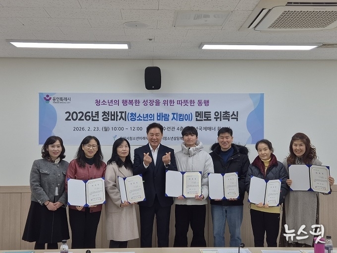 (뉴스핏 = 김수진 기자) 용인시청소년미래재단 청소년상담복지센터는 23일 청소년수련관 4층 청소년국제매너 회의실에서 ‘2026년도 청바지(청소년의 바람 지킴이)’ 멘토 위촉식을 개최했다.