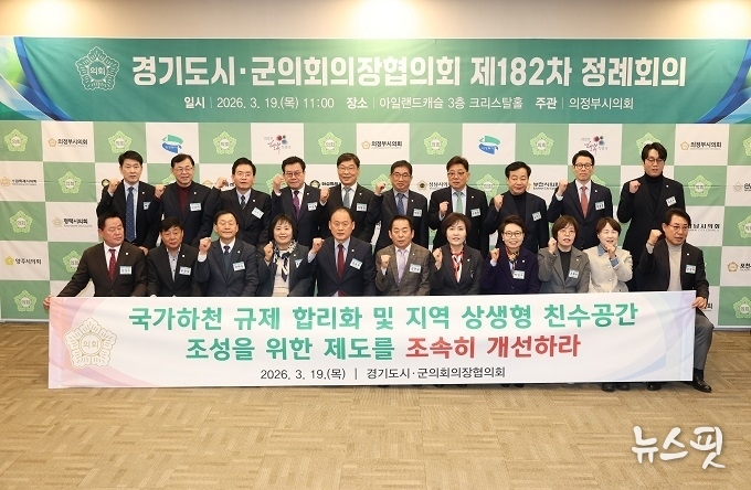 (뉴스핏 = 김수진 기자) 경기도시군의회의장협의회 회장인 동두천시의회 김승호 의장이 제안한 ‘국가하천 규제 합리화 및 지역 상생형 친수공간 조성을 위한 제도 개선 촉구 건의안’이 19일 의정부 아일랜드캐슬에서 열린 제182차 정례회의에서 만장일치로 채택됐다.