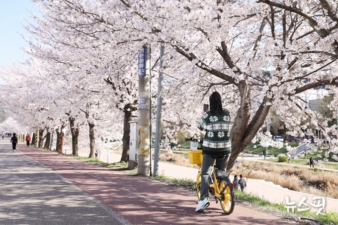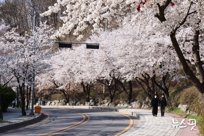 (뉴스핏 = 김수진 기자) 의왕시청, 백운호수 생태탐방로, 학의천변, 문화예술로(모락산터널~계원대학교) 등 의왕시 주요 벚꽃 명소에 벚꽃이 만개했다.