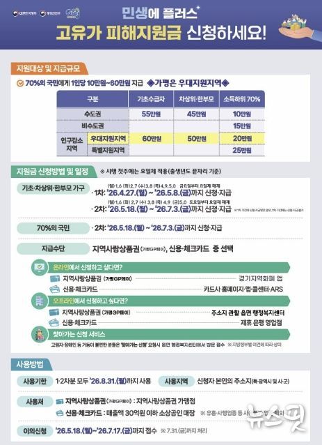 군 관계자는 “가평군은 인구감소 우대 지역으로 분류돼 지원 규모가 큰 만큼, 대상 군민들이 한 분도 빠짐없이 혜택을 받을 수 있도록 신청 안내와 현장 대응에 만전을 기하겠다”고 말했다.