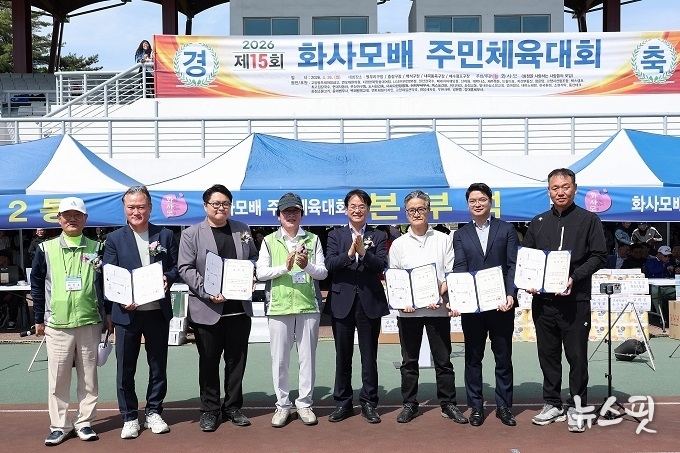 (뉴스핏 = 김수진 기자) 이동환 고양특례시장이 26일 별무리구장에서 열린 ‘제15회 화사모배 주민체육대회’서 축사를 하고, 생활체육 발전에 기여한 유공자에 표창장을 수여했다.