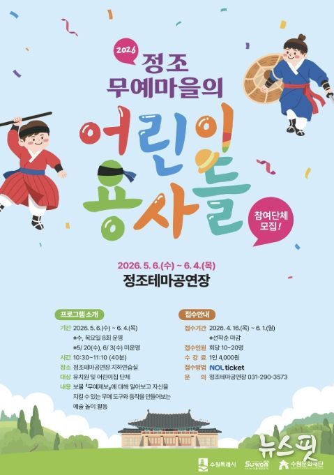 (뉴스핏 = 김호 기자) 수원문화재단 정조테마공연장의 대표 예술교육 프로그램 '정조무예마을의 어린이 용사들'의 상반기 교육이 접수 마감되며 큰 호응을 얻고 있다.
