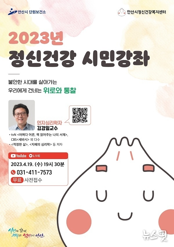 (뉴스핏 = 김호 기자) 안산시 정신건강복지센터는 시민의 정신 건강증진과 인식개선을 위해 정신건강 시민강좌‘우리에게 건네는 위로와 통찰’을 운영한다고 6일 밝혔다.