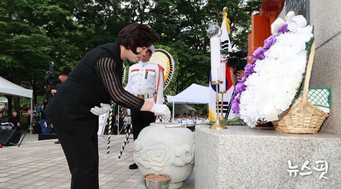(뉴스핏 = 박선화 기자) 과천시는 6일 ‘제68회 현충일’을 맞아 중앙공원 현충탑에서 추념식을 거행했다.