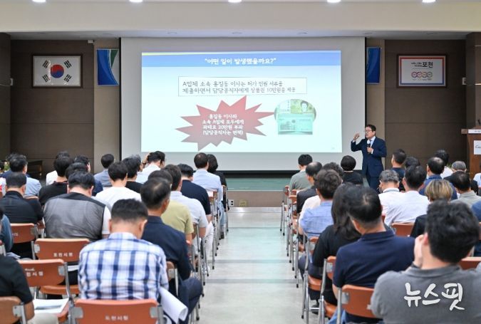 (뉴스핏 = 김호 기자) 포천시는 12일 시청 대강당에서 포천 관내 공간정보 산업협회, 건축사회 회원 등 허가 관련자 1백여 명을 초청해 ‘시장과 함께하는 청렴 간담회 및 교육’을 실시했다.
