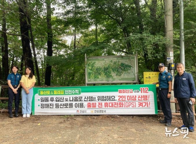 (뉴스핏 = 민선기 기자) 안성시는 지난 8월 24일부터 9월 4일까지 안성경찰서와 협업하여 관내 주요 등산로 8개소 및 둘레길 2개소에 대한 ‘묻지마 범죄’ 예방을 위한 안전점검을 실시했다.