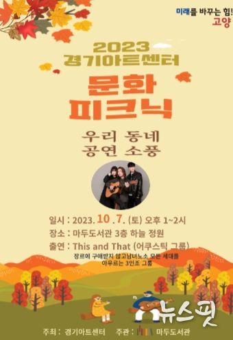 (뉴스핏 = 김호 기자) 고양특례시 마두도서관이 10월 7일 오후 1시부터 2시까지 3층 하늘정원에서‘우리 동네 공연 소풍’을 개최한다.