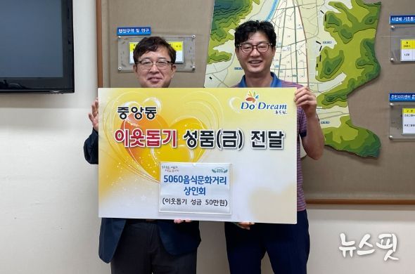 중앙동 5060음식문화거리 상인회는 정기적으로 소외계층을 돕기 위해 성금을 기부하고 있으며, 지역사회 발전에도 크게 기여하고 있다.
