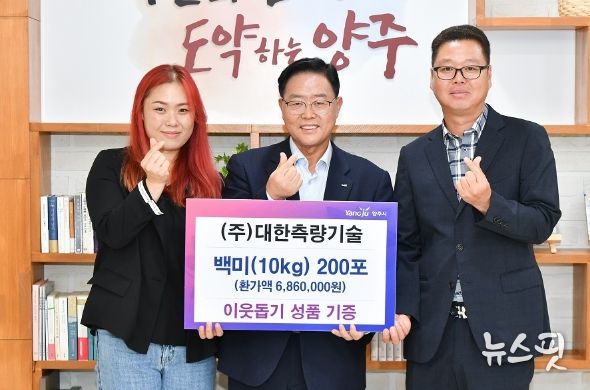 (뉴스핏 = 김호 기자) 양주시는 ㈜대한측량기술에서 시청을 방문해 저소득층을 돕기 위해 백미 200포(700만원 상당)를 기부했다고 27일 밝혔다.