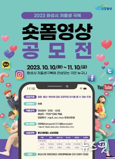 (뉴스핏 = 민선기 기자) 화성시가 결혼, 출산, 육아에 대해 긍정적 인식을 확산하고 저출생 문제를 극복하기 위한 숏폼 영상 공모전을 개최한다.