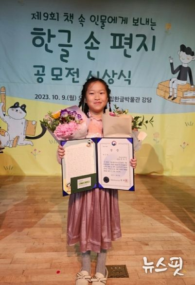 (뉴스핏 = 김호 기자) 국립어린이청소년도서관과 국립한글박물관이 공동 주최한 '제9회 책 속 인물에게 보내는 한글 손 편지' 공모전에 참여한 여주시(시장 이충우) 여주초등학교 3학년 최민주 어린이가 버금상(국립어린이청소년도서관장상)을 수상하는 영예를 안았다.