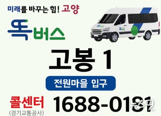 시 관계자는 “전화 호출 서비스 도입으로 스마트폰 사용이 어려운 주민도 편리하게 똑버스를 이용할 수 있게 될 것”이라며 “앞으로도 교통 사각지대 없는 고양시를 만들기 위해 노력하겠다”라고 전했다.