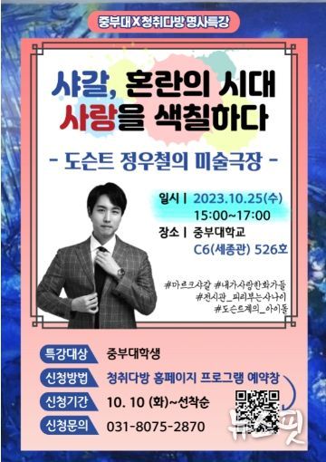 이번 강연은 고양시의 청년 지원 공간인 청취다방이 주관하며 중부대학교와 협력해 진행된다.