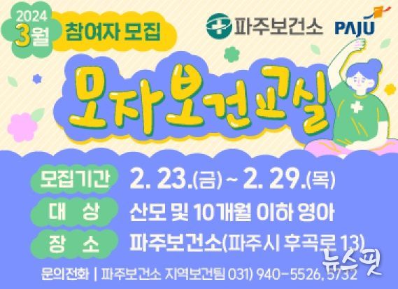 (뉴스핏 = 김호 기자) 파주보건소(금촌)는 3월부터 모자보건교실 운영을 시작한다.