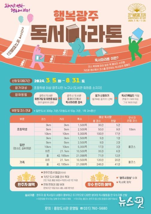 (뉴스핏 = 김호 기자) 광주시는 오는 3월 5일부터 8월 31일까지 독서 장려 캠페인 ‘행복광주 독서마라톤’을 운영한다고 28일 밝혔다.