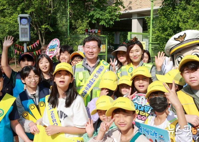 (뉴스핏 = 김수진 기자) 이상일 용인특례시장이 9일 오전 기흥구 동백동 용인백현초등학교를 방문해 등교하는 학생들의 안전을 위한 캠페인에 참여했다.