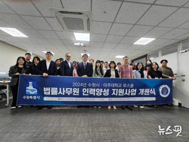 (뉴스핏 = 김호 기자) 수원시와 아주대학교 로스쿨(법학전문대학원)은 27일 아주대학교 캠퍼스플라자에서 ‘수원시·아주대학교 로스쿨 법률사무원 인력양성 지원사업’ 개강식을 열었다.