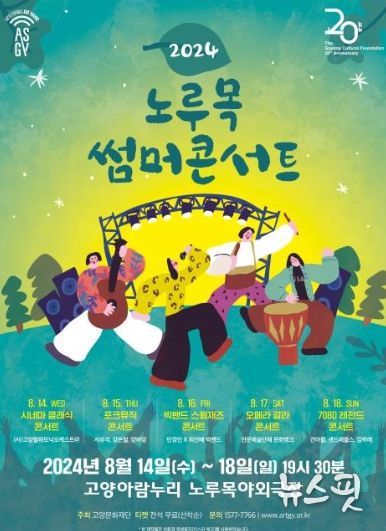 (뉴스핏 = 김수진 기자) 고양문화재단은 8월 여름휴가 시즌을 맞이하여 온 가족이 자연 속에서 함께 즐길 수 있는 무료 야외 음악 콘서트인 '2024 노루목 썸머 콘서트'를 8월 14일 수요일부터 18일 일요일까지 5일간 매일 19시 30분에 고양아람누리 노루목야외극장에서 개최한다.