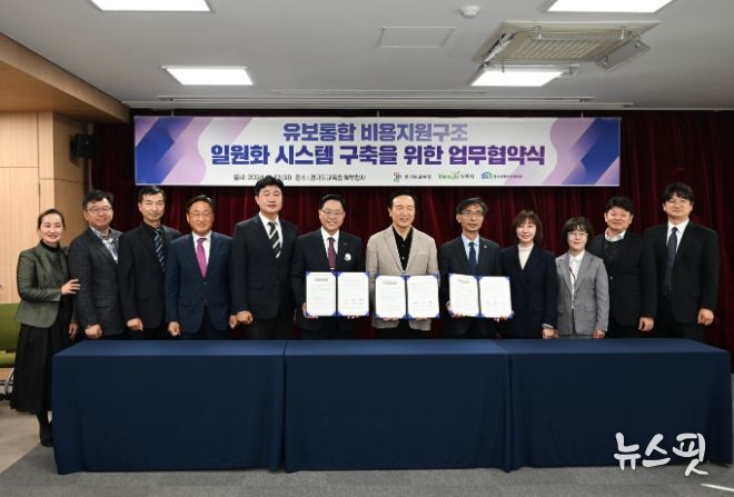 이번 협약은 경기도교육청과 교육발전특구 시범지역으로 선정된 양주시, 위탁기관인 한국사회보장정보원 간 전국 최초 ‘유보통합 비용지원구조 일원화 시스템 구축 시범사업’의 안정적인 추진을 위한 상호 이해와 협력 증진을 위한 목적으로 추진됐다. 협약서에는 ▲비용지원구조 일원화 시스템 구축, ▲비용지원구조 일원화 시범사업 운영 및 지원 등의 내용이 포함됐다.