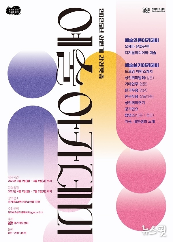 (뉴스핏 = 김수진 기자) 경기아트센터는 상반기 감성맞춤 예술아카데미 프로그램을 운영한다고 17일 밝혔다.